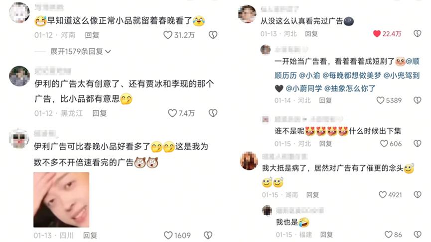 根据网民的反馈,抖音评论区频繁出现「广告有创意」「比起春晚小品还要好看」「跪求续集」等待正面评价,这些反馈从侧面反映出该剧得到了观众的认可。