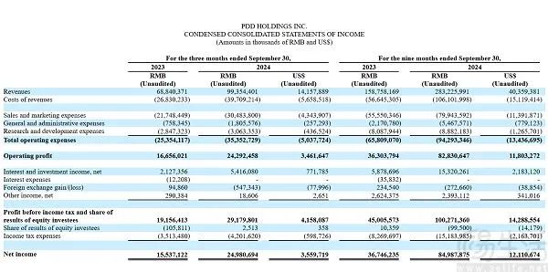 值得注意的是,在社区团购业务前景不明朗的同时,拼多多整体业绩的增长势头也不再像往年那样迅速。例如,2024年第三季度,其收入为993.54亿元,同比增长44%,属于普通股股东的净利润为249.81亿元,同比增长61%。、环比下降22%。尽管本季度拼多多与竞争对手阿里、JD.COM相比仍保持两位数的增长,但与前两季度和2023年相比,其收入增速明显放缓。