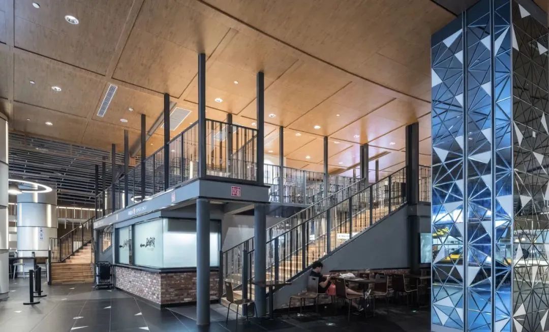 跨越三层的景观中厅设置在4F~6F的公共空间:“庆典广场”。这种设计不仅营造了一种宽阔的剧院感,而且可以有效利用大台阶来吸引游客。