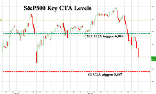 截至最新收盘,标普500指数报5861点,单日下跌1.6%,连续下跌6045点短期CTA触发位和5887点中期触发位。