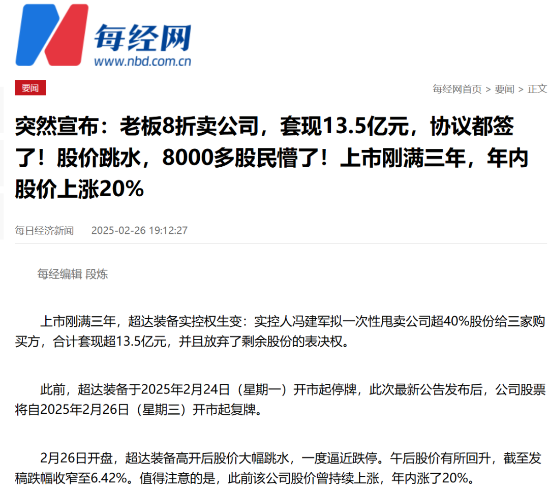上市一满三年就脱身,南通老板忍不住了。