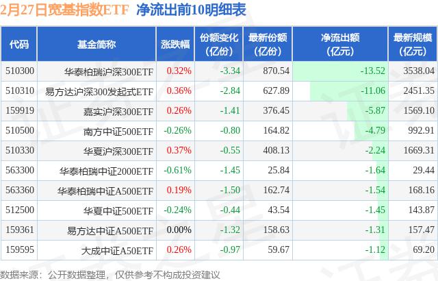 2月27日,宽基指数ETF净流出50.2亿元