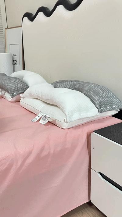 不管你怎么翻身,枕芯都能牢牢托住你的头和脖子。仰卧睡觉时,头部陷入柔软的支撑;侧卧时,长圆枕贴合颈部曲线,肩膀不再受压,舒服到不想动。