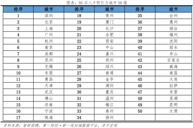 这个问题,从95开始 后期人才吸引力城市 50 在强大的榜单中,我们也可以清楚地看到: