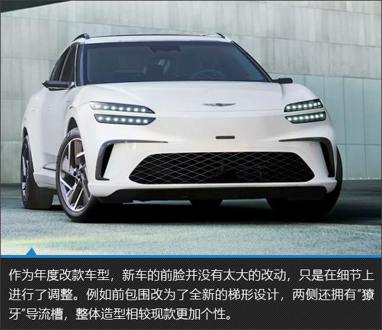 可以看到,虽然新捷尼赛思 GV60 与目前的车型相比,外观变化不大,但对细节的调整让它更时尚,尤其是全新的梯形包围,比目前的车型简单得多,更容易被消费者接受。