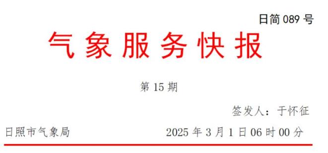 日照市气象台继续发布大风黄色预警和寒潮蓝色预警。白天到晚上,下着小雨,东北风,陆地3。~4级增强到4~5级,阵风6级,沿海及近海水域4级增强至4级~5级、阵风6~7级,海上5~6级增强到6~7级,阵风8级,沿海地区最高气温11℃,内陆地区15℃左右,北部地区最低气温6℃,其他地区8℃左右。