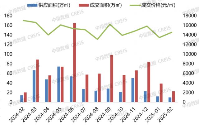 受春节假期影响,本月青岛商品房试产表现疲软,供应同比明显下降。商品房供应 9.98 万㎡,供应区主要集中在城阳区、即墨区和黄岛区。商品房的交易面积是 23 万㎡,同比上涨 12.3%。就销售价格而言,本月青岛商品房均价为 14553 元 /㎡。