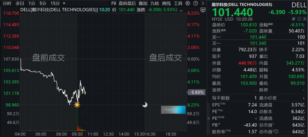 2024年第四季度,戴尔科技下滑5%以上,营收低于预期。