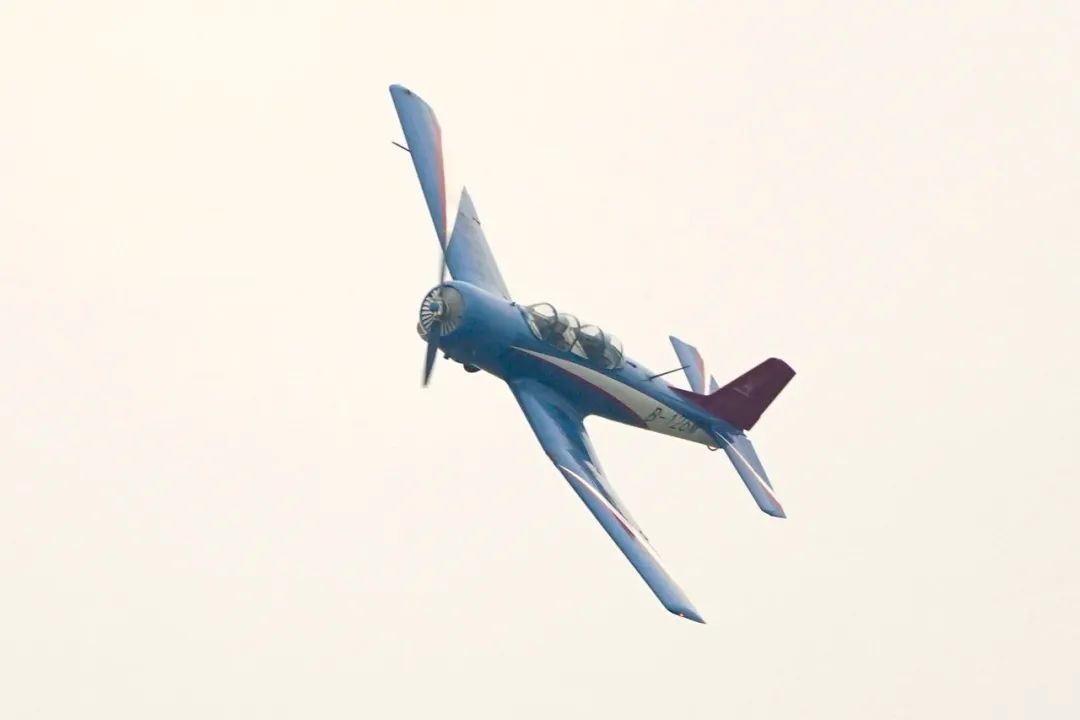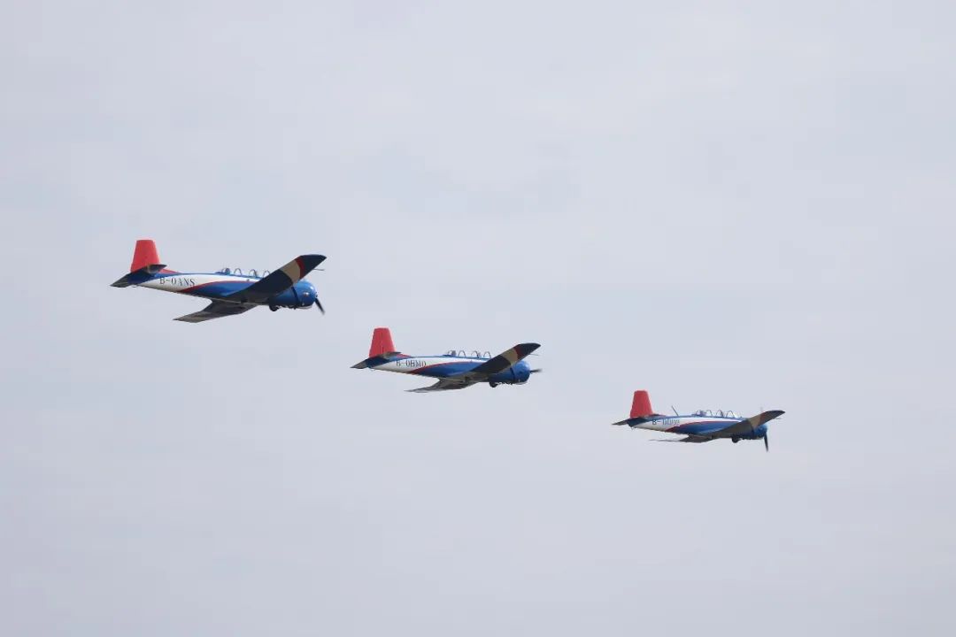▲民用初教6飞机在南昌飞机会议上进行航行编队展示