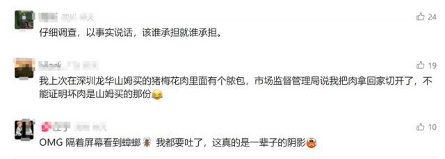 对此,网友热议。有人说:“我还是相信盒马,希望这是个例子。”有人说:“说实话,谁来承担就谁来承担。”。也有网友表示,“我也在山姆买了不好的猪梅花肉”。