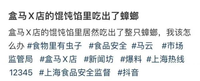 吃蟑螂的盒马馄饨?上海市监局:已立案