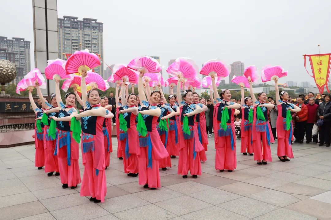 在秧歌舞中转腕翩然的红绸扇子