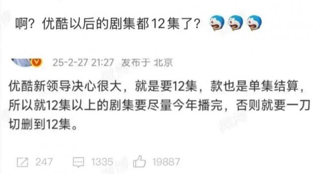 2 月 28 日本,有媒体博主发文称“优酷新领导决心很大,(剧集)就是要做的, 12 集,12 上述剧集应尽量在今年播出,否则要一刀切删除。 12 集合。随后,相关话题在微博热搜中排名第一。