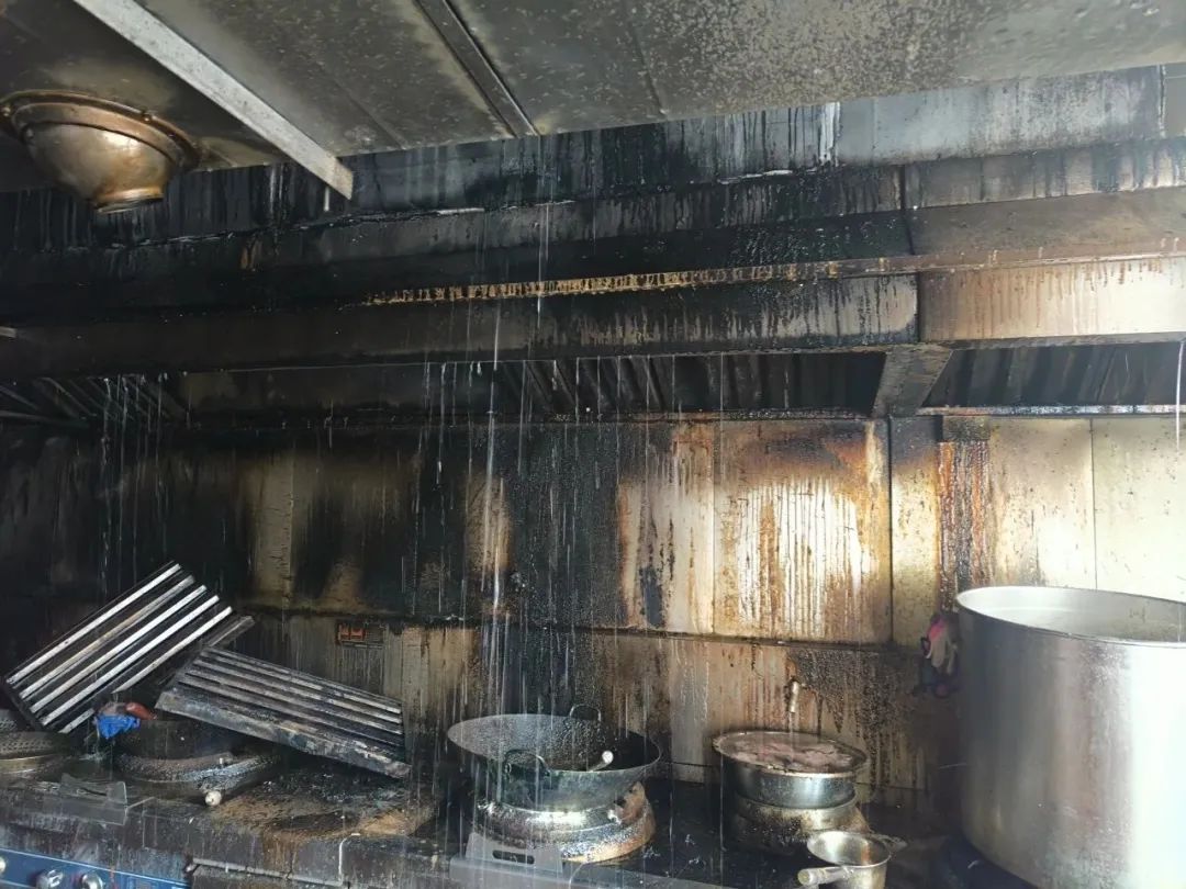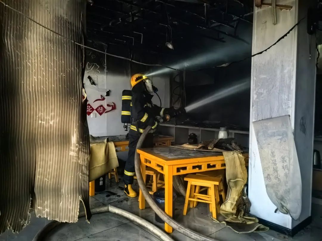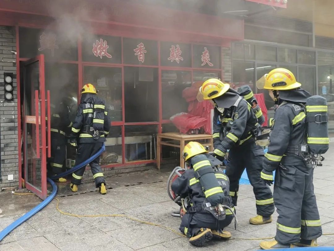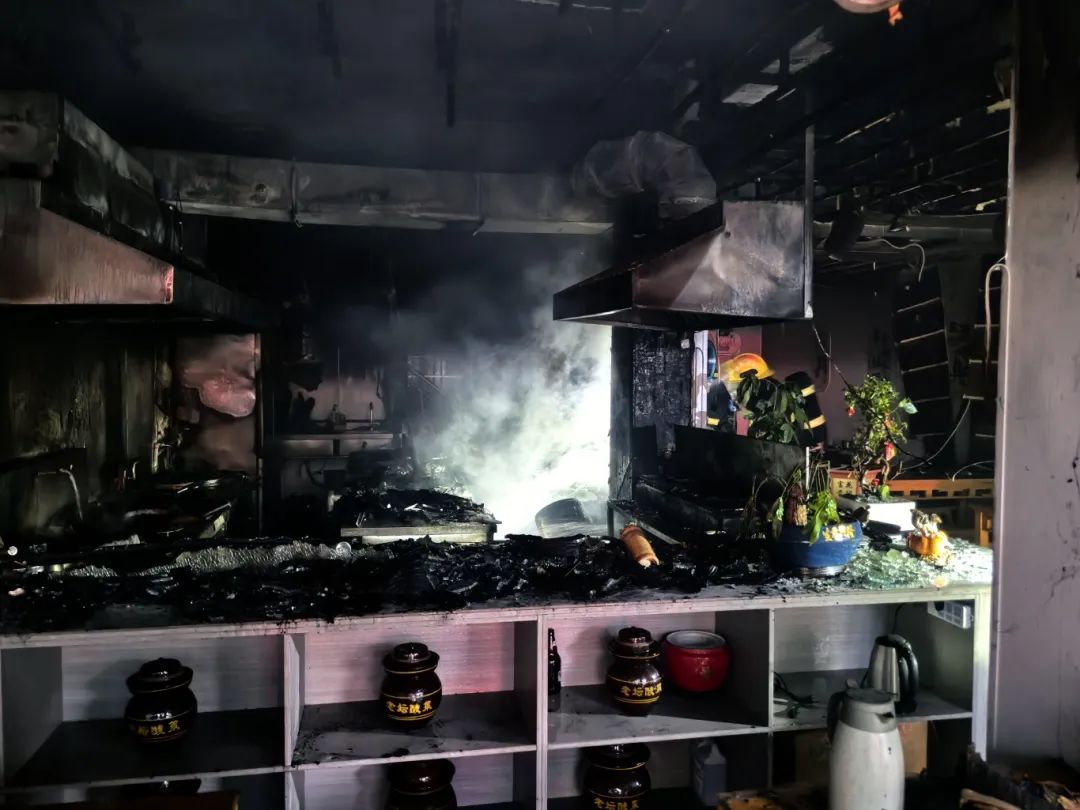 消防队员到达现场后,发现店内烟雾弥漫,厨房内易燃物较多,火势已从厨房蔓延到部分天花板,情况十分危急。