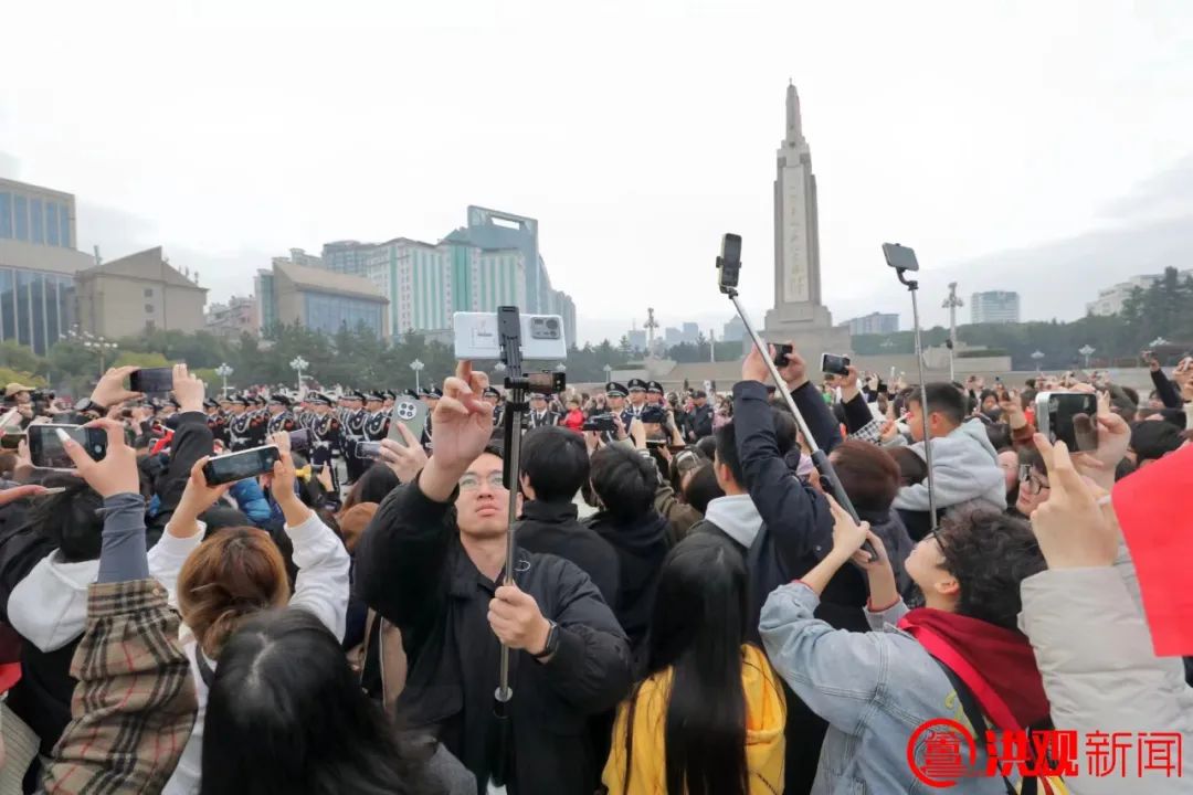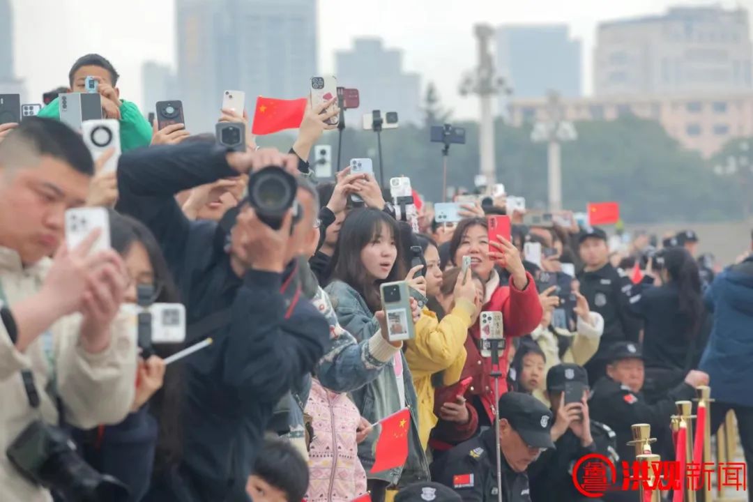 在八一广场上,除了来这里的游客,许多南昌市民也自发地来参观仪式。“在这个美丽的春天,我很自豪能和你一起见证国旗的崛起。南昌是英雄城,这是我们的荣耀。”市民王甜感慨地说:“今天,我特意带孩子来,希望他从小就深深地爱国。”