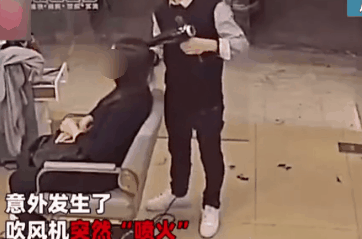 在广东汕尾一家美发店,tony老师帮顾客打理头发时,吹风机突然“吐火”,据了解起火原因是吹风机电线损坏。