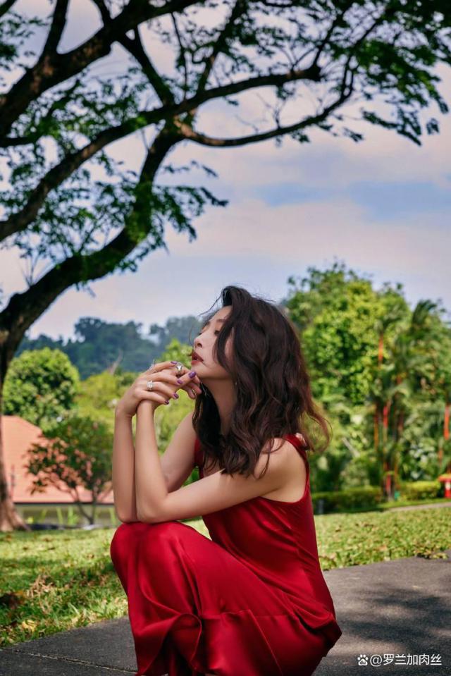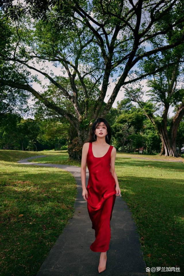 她明亮迷人,每次出现在公众视野中,都像一道美丽的风景线。她充满了女人味,迷人的气质让人倾倒。她的红色连衣裙看起来像火玫瑰,温暖而无拘无束。