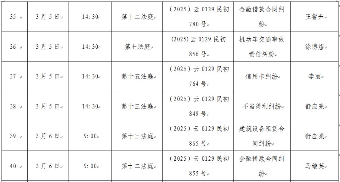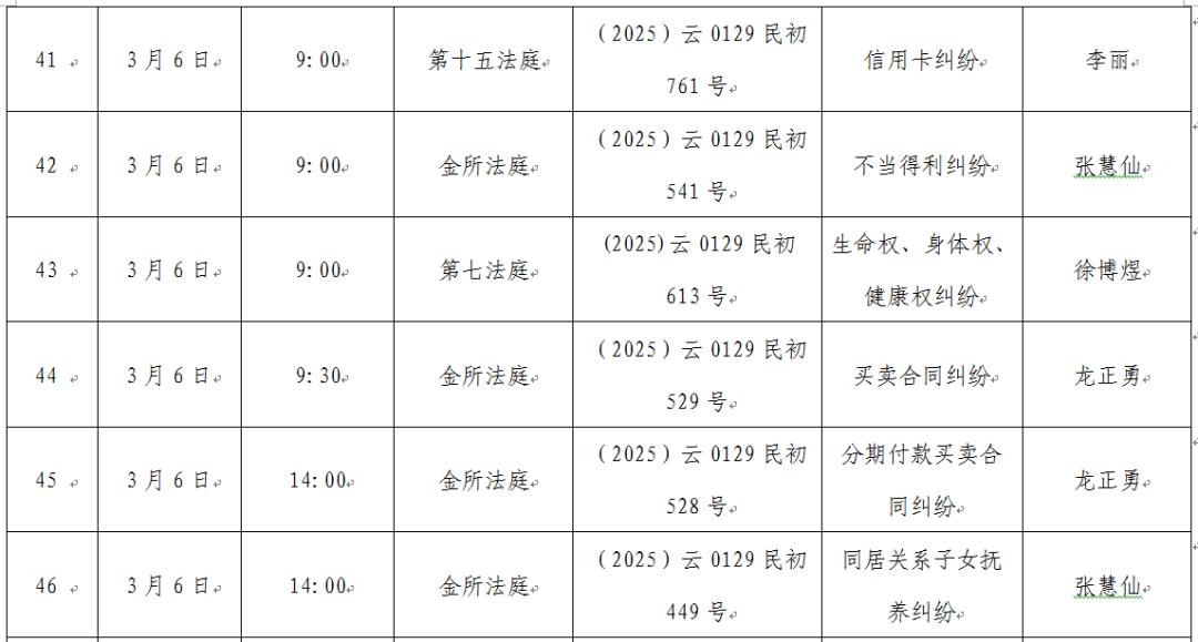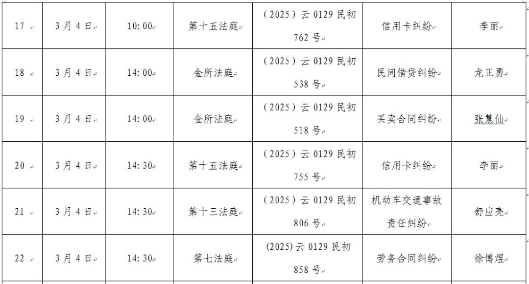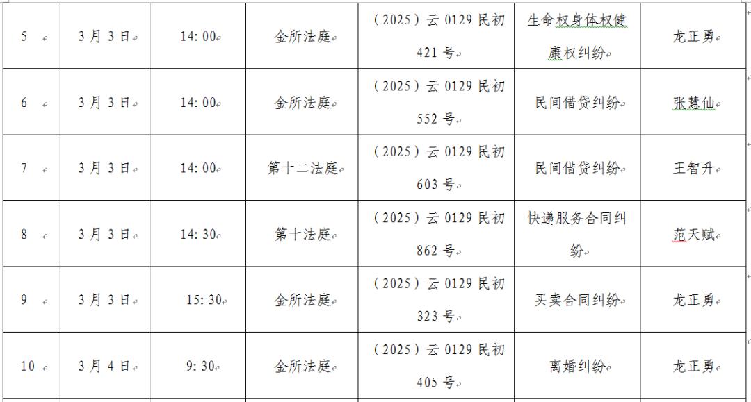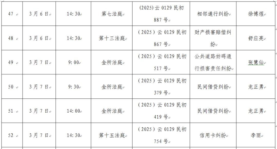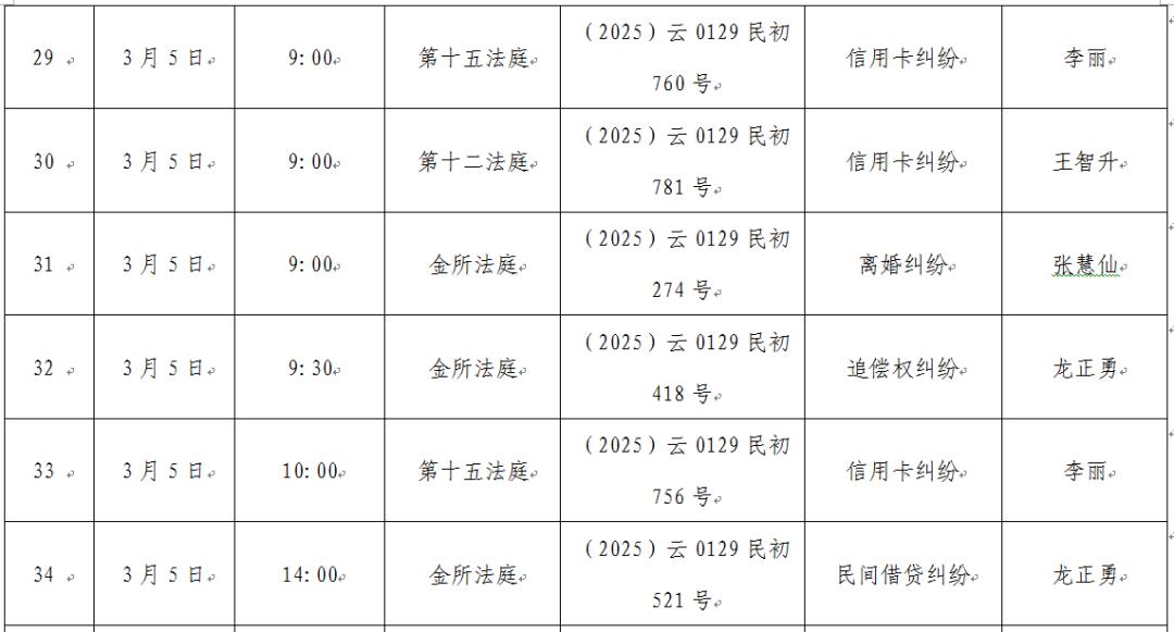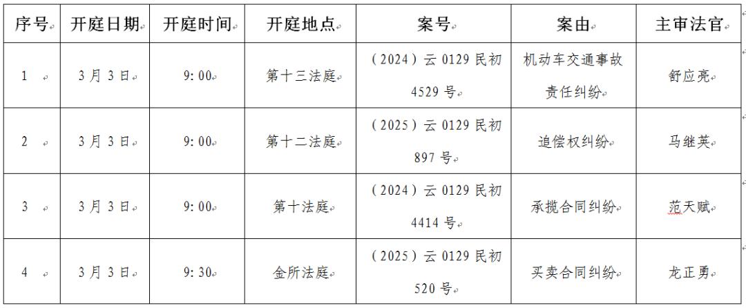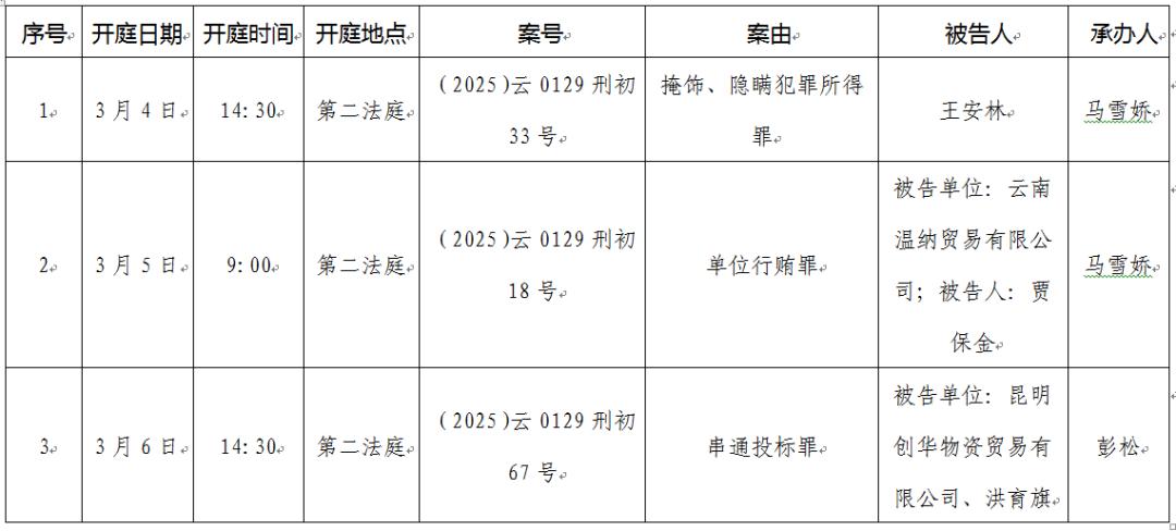 原标题:寻甸法院开庭时间表2025.3.3-2025.3.7》