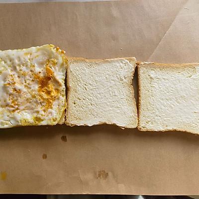 2、将煎好的鸡蛋放入左片 ( 煎蛋的时候把蛋黄搅散 )
