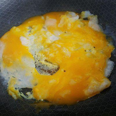3、手脚快速划拉,凭经验炒出大蛋块,酌情挪出锅外。 / 旁边