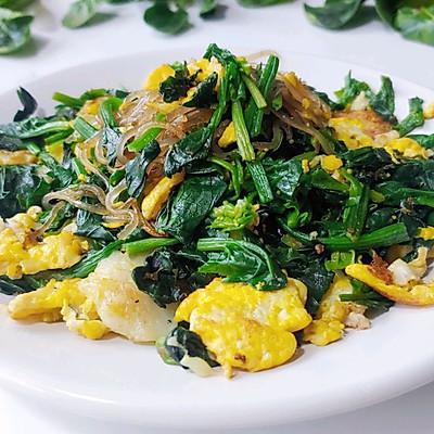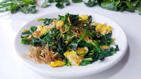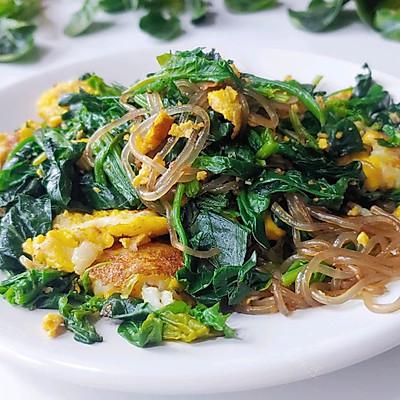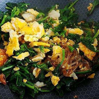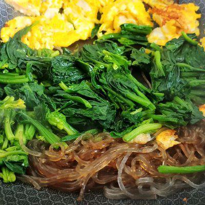 5、顺手划拉均匀扔上早焯水过凉握干改大段嫩菠菜。