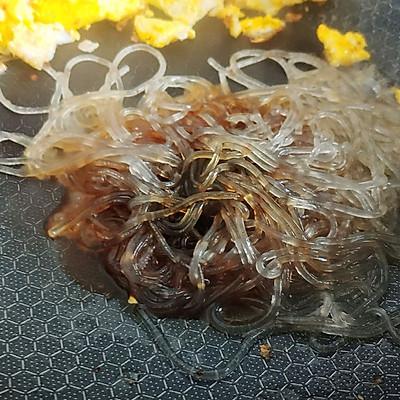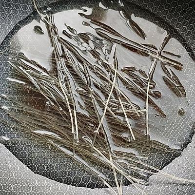 4、捞上已经泡透的粉条,顺手淋上咕嘟的酱油调色。
