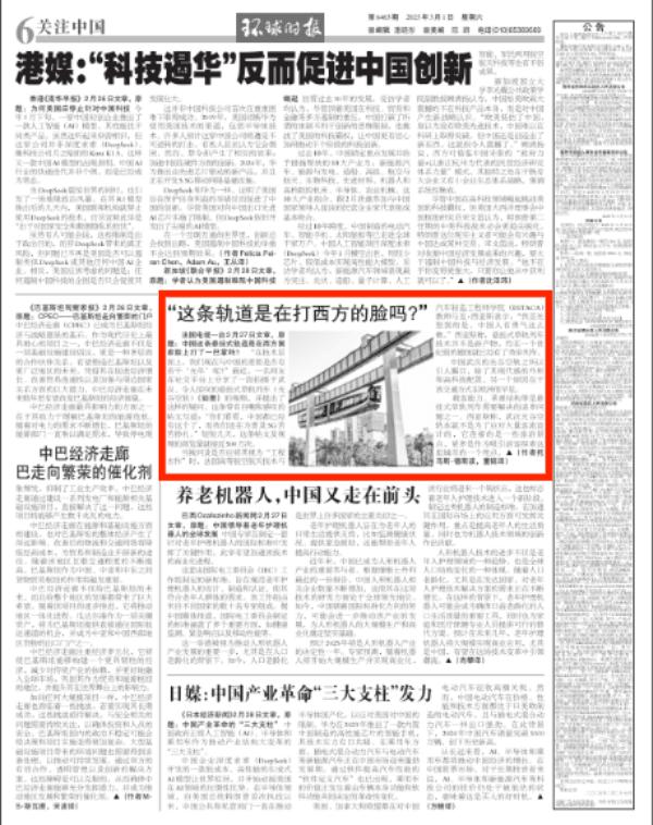 法国电视台2月27日的一篇文章,原题:中国这条悬挂式路轨是否在西方国家的脸上打了一巴掌?