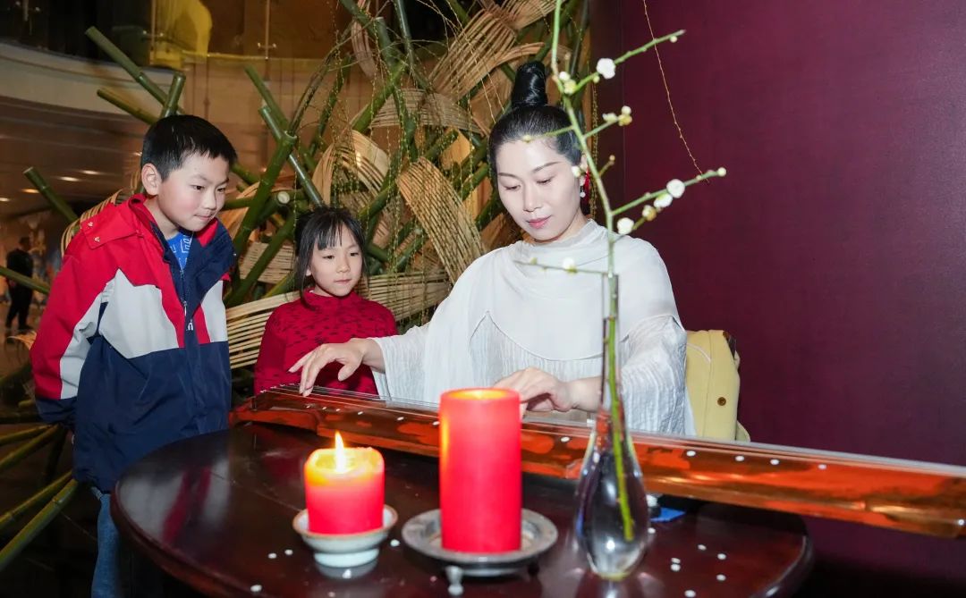 现场非遗展区内,古琴谱识项目代表性传承人张燕演奏古曲,营造优雅气氛。