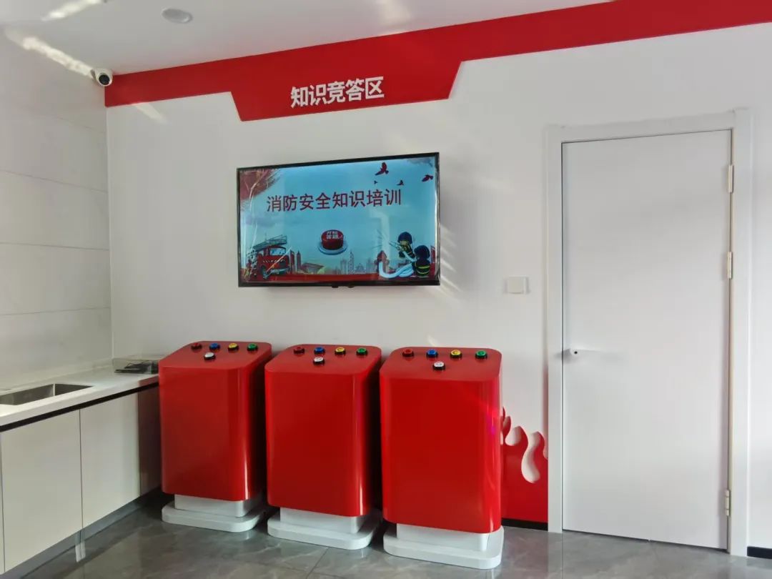 随后,与会人员参观了科普教育基地,室内建筑面积120平方米,可容纳50多人同时参观学习。基地内布局的展区各有特色,集宣传、教育、欣赏、科学、互动于一体,包括消防服展示、火灾案例警示、VR模拟灭火演练、家庭灭火、消防安全竞赛答题、电动自行车模拟灭火、火灾自动报警、联动演示等功能。