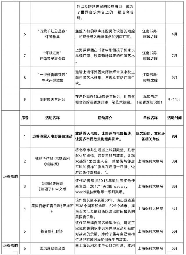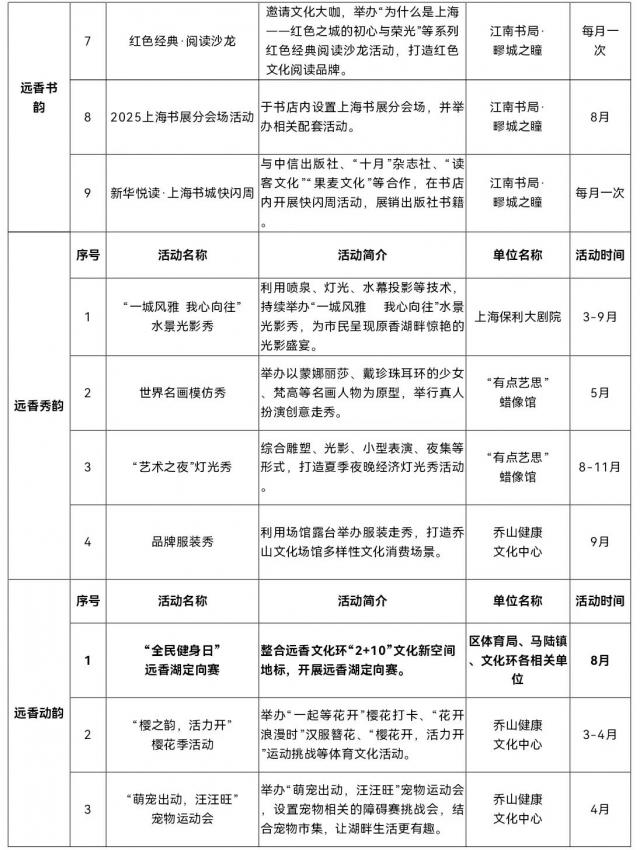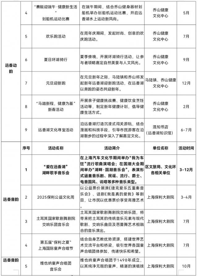 来源:区委宣传部、区商务委、区文化旅游局、区体育局、区新城办、马陆镇、新城公司等。