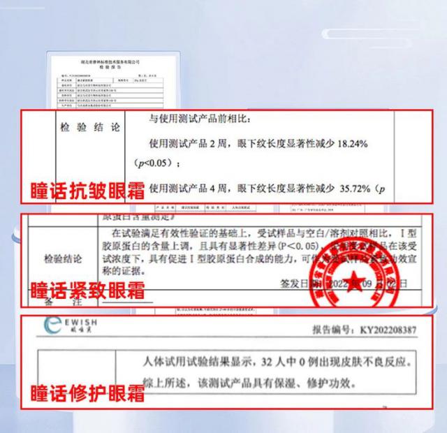 三款眼霜,根据不同的功能,马应龙做了专业的测试,大部分试用者反馈:保湿效果显著,确实有淡化细纹、紧致肌肤的功能。