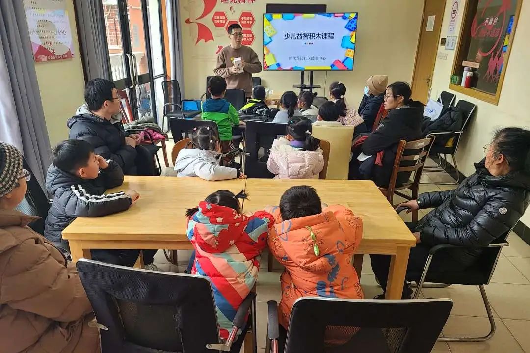 近日,新江湾城街道时代花园社区谐邻中心举办了一场益智积木搭建活动。在专业老师的指导下,12组亲子家庭共同完成了创意“投篮机”模型的制作。这种结合机械原理和趣味竞技的教育实践,成为社区推动“家校社”合作教育的创新尝试。