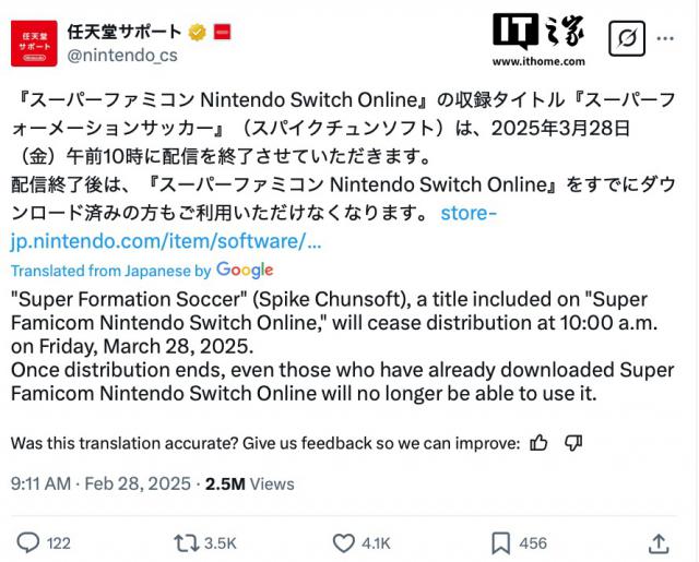 但任天堂今天宣布,3 月 28 一款名为日起会员游戏库的会员游戏。《Super Formation Soccer》足球比赛将在全球范围内下架,任天堂第一次从任天堂开始 NSO 会员游戏库中下架作品。