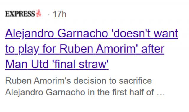 阿莫林拒绝公开质疑加纳乔的态度,以防止干扰球队。然而,当他回答英国媒体的问题时,他提到了拉什福德的名字,其中一些人想要覆盖它。阿莫林强调他将与加纳乔交谈。《每日星报》说,在后来的私人对话中,阿莫林警告加纳乔继续改善他的反应。