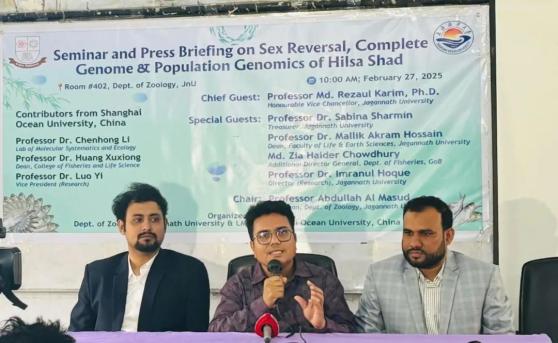 孟加拉国贾格纳特大学2月27日(JNU)和中国上海海洋大学(SHOU)在达卡举行的新闻发布会上,联合研究小组宣布在孟加拉国国鱼-鲶鱼(Tenualosa ilisha)该研究取得了三项突破性成果,这标志着中孟两国在鲭鱼生长习性、资源保护和可持续管理方面的研究达到了一个新的高度,更加突出了“一带一路”倡议下国际科研合作的显著成效。