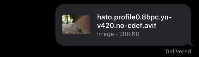 IT 世家援引媒体报道, iOS 和 macOS 系统的 iMessage 应用程序,发送浏览 AVIF 照片显示正常,发送后无法正常查看,只显示小缩略图,无法调整尺寸,影响使用体验。