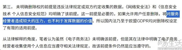 相比之下,绝大多数龙头企业都在讨论如何合法地“避免”客户删除自己信息的需求,因为这样会“给服务经营者带来很大的压力,不利于数据的价值”。