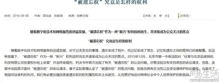 2016年,权威网站发表了一篇关于“被遗忘权”的研究文章,肯定了权利应该受到保护。