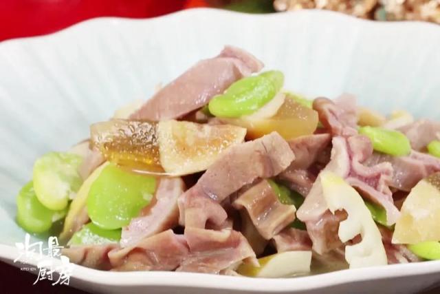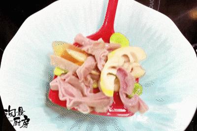 今日看厨师就用猪肚做一个季节性的三鲜炒菜,上菜的时候要质疑味精是不是偷偷放了!材料也很灵活。新鲜的豆瓣和春笋只是放在中间。自带的美味是入锅的信心。 ~ 入口风味极具层次感,不乏温馨。