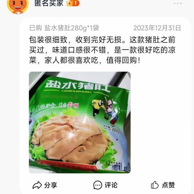 这款沪食【盐水猪肚】不需要费力地打开袋子即食,熟盐腌制的猪肚好熟易烂,味道鲜美,无腥味,甚至不需要调味!