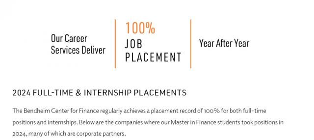 普林斯顿 MFin 项目由 Bendheim 金融中心(BCF)建设,是当之无愧的就业神项目。� � 自 2017 年到 2023 年,所有这个项目的学生都可以保证 100% 落地率(包括暑期实习和全职实习 ~)。