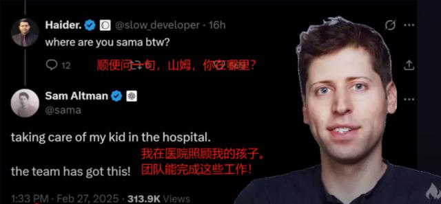 不过,这次发布会却充满了戏剧性:奥特曼在网上 GPT-4.5 赞不绝口,本人却缺席了新闻发布会,只是因为他是新父亲,要在医院全力带娃。