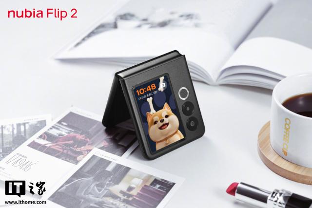 努比亚 Flip 2 折叠式手机配合太空钢材料扇骨转轴,支持双屏浏览拍摄