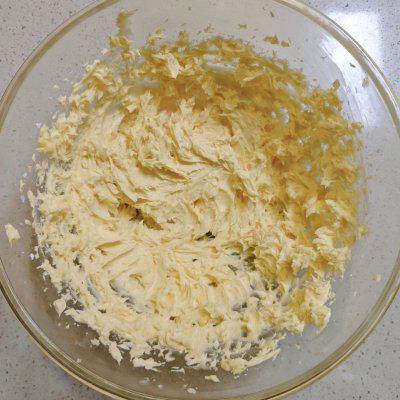 15、黄油 135g ➕盐 1g,打到蓬松泛白。