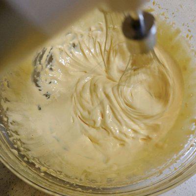 11、再次制作白脱奶油 : 80g 黄色打到蓬松泛白。