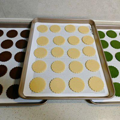 8、整齐地放在烤盘里,这个配方可以做。 62 片饼干。