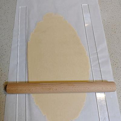 6、将面团擀至 4mm 加厚,放入冰箱冷冻十分钟。