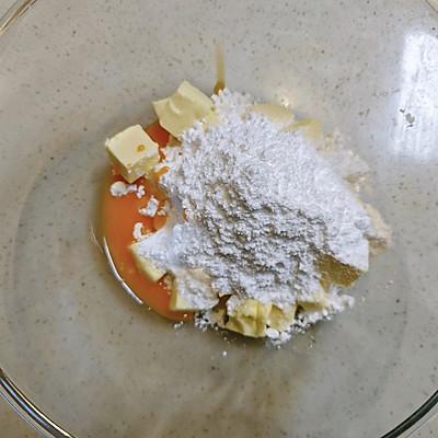 2、首先烤曲奇饼干 : 195g 黄油➕ 25g 蛋黄➕ 120g 糖粉