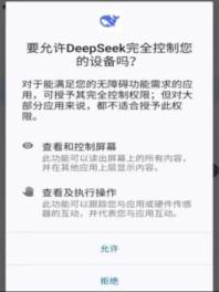 当用户点击运行假App时,App会提示用户“需要更新应用程序”,并诱导用户点击“更新”按钮。使用者点击后,会提示安装所谓的“新版本”DeepSeek应用程序,实际上是包括恶意程序在内的子安装包,并诱导使用者授予其后台程序和使用无障碍服务的权限。