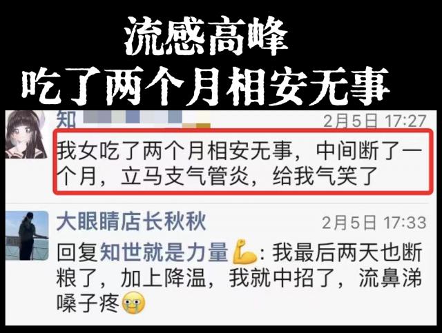 那天阿秋告诉我,一个老主人的女儿也是。在病毒的高峰期,她每天吃2个月,以免因为美而安全。结果中间断了一个月,马上支气管炎。现在细菌和病毒都很厉害,家里根本断不了。